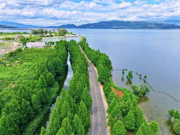 杞麓湖:杞麓湖環(huán)湖綠道是追風(fēng)者的樂園。騎上單車,沿湖岸迎風(fēng)穿行,綠樹成蔭,湖風(fēng)送爽;或悠然乘坐觀光車,36