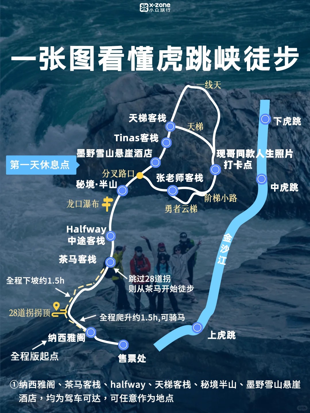 D1麗江→虎跳峽→徒步起點→納西雅閣→28道拐→茶馬客棧→入住客棧